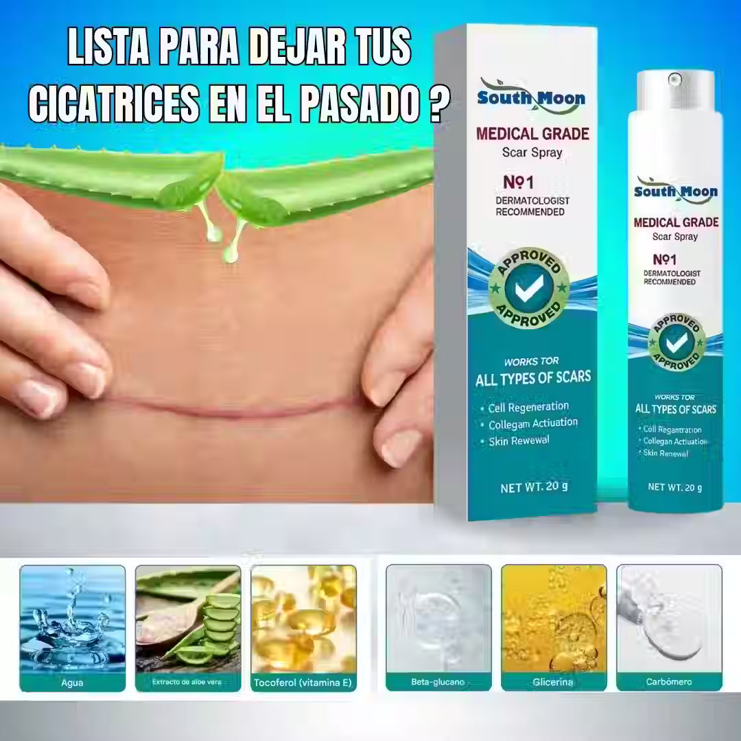 Spray médico South Moon acelera cicatrización, hidrata y alisa desde la primera aplicación.